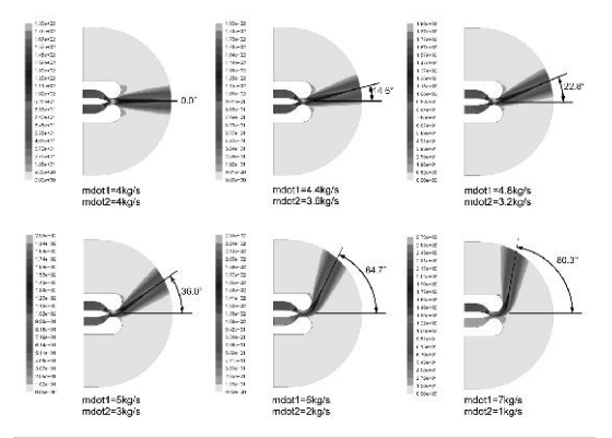 Up to 45 deg of deflection has been obtained in subsonic condition even in presence of swirl (using simplified testing conditions). This encouraging results has allowed a certain degree of confidence through applications on different aircraft types.