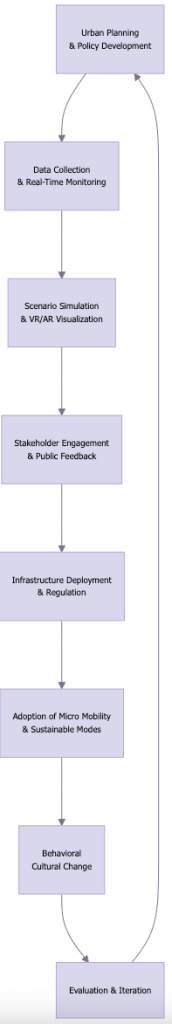 | VR/AR Modeling Environment | Virtual/augmented simulations of urban mobility and infrastructure | Enables scenario testing, stakeholder engagement, and planning accuracy |